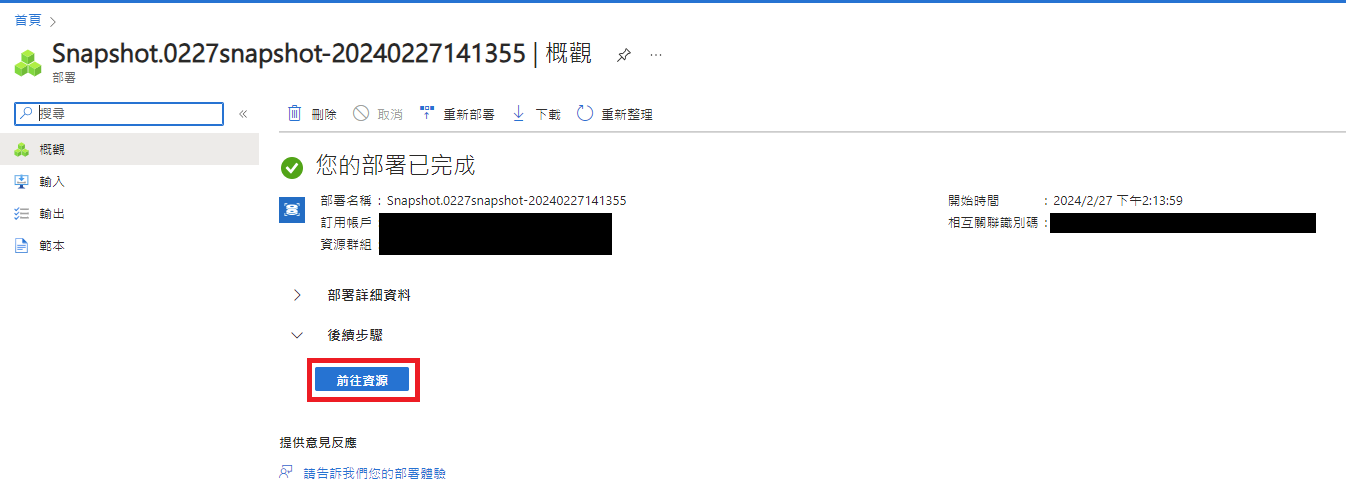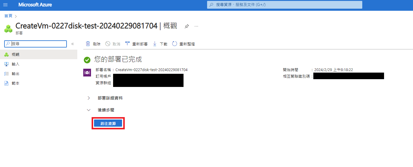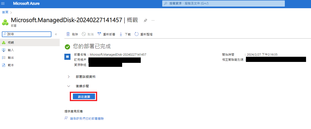 (3) 完成建立磁碟!建立完成後點選前往資源